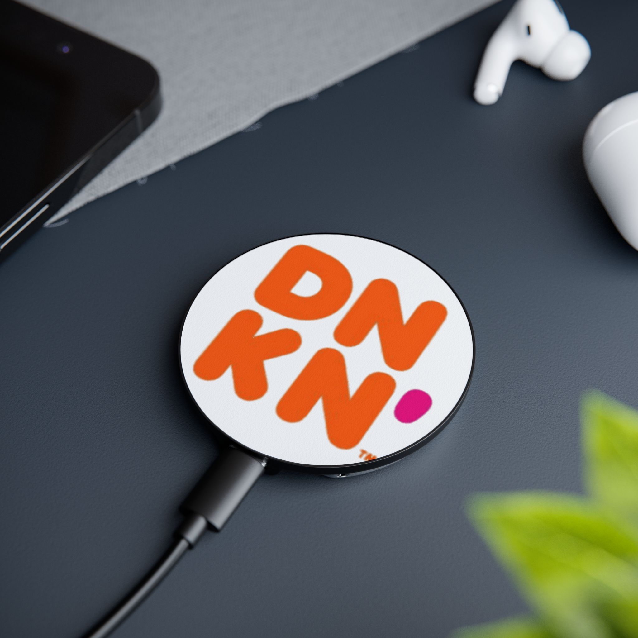 Created to satisfy gadget fans around the world, this customized wireless charger works universally with all wireless charging-compatible smartphones. With a slick black body, a matte white top, and a silver metal ring, it’s a perfect canvas for your art. Comes with a built-in ring holder, supports Qi wireless charging standard and MagSafe function, and ships with a USB-C cable included.